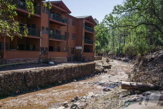 미국 텍사스주와 접경한 뉴멕시코주에서도 홍수가 9일 발생해 건물과 도로가 손상됐다. 2025.7.9 ⓒ 로이터=뉴스1 ⓒ News1 강민경 기자 |