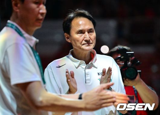 [OSEN=안양, 조은정 기자]20일 안양 정관장 아레나에서 한국 남자농구 대표팀과 카타르 대표팀의 2차 평가전이 열렸다. 안준호 감독이 이끄는 남자농구대표팀은 지난 18일 같은 장소에서 개최된 카타르와 1차 평가전에서 90-71로 승리했다. 경기 전 안준호 감독이 코트에 들어서는 대표팀을 맞이하고 있다. 2025.07.20 /cej@osen.co.kr