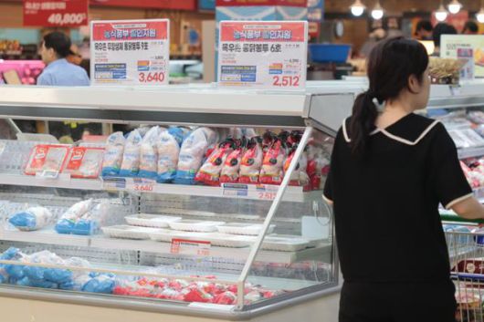 초복인 20일 서울 서초구 양재동 하나로마트에서 시민들이 육계 제품류를 살펴보고 있다. 연합뉴스 |