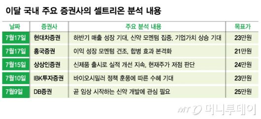 이달 국내 주요 증권사의 셀트리온 분석 내용/그래픽=김다나 |