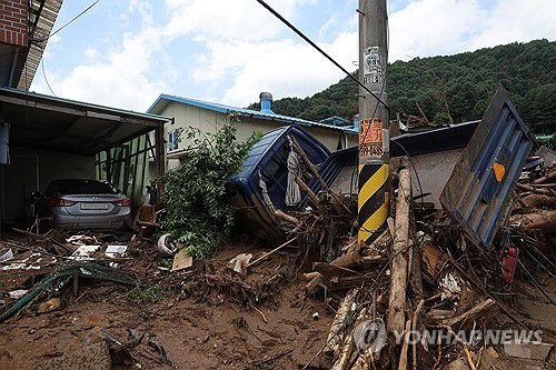 (가평=연합뉴스) 우영식 기자 = 20일 새벽 집중호우가 쏟아진 경기 가평군 수해 지역에 전기와 수돗물 공급마저 끊겨 주민들이 이중고를 겪고 있다.