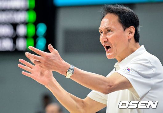 [OSEN=안양, 조은정 기자]20일 안양 정관장 아레나에서 한국 남자농구 대표팀과 카타르 대표팀의 2차 평가전이 열렸다. 안준호 감독이 이끄는 남자농구대표팀은 지난 18일 같은 장소에서 개최된 카타르와 1차 평가전에서 90-71로 승리했다. 2쿼터 대한민국 안준호 감독이 작전을 지시하고 있다. 2025.07.20 /cej@osen.co.kr