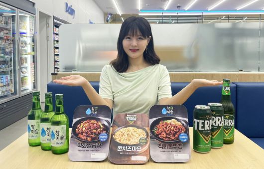 20일 편의점업계에 따르면 GS25는 하이트진로와 협업해 업계 최초로 맞춤형 안주 시리즈를 선보인다. 참이슬 안주 2종(직화알곱창·직화불막창)과 테라 안주 1종(콘치즈마요) 등 총 3종으로 오는 24일부터 순차적으로 출시된다. GS25는 안주 상품 포장 전면에 주류 브랜드와 이미지를 표기해 고객이 맞춤형 안주임을 알 수 있게 했다.