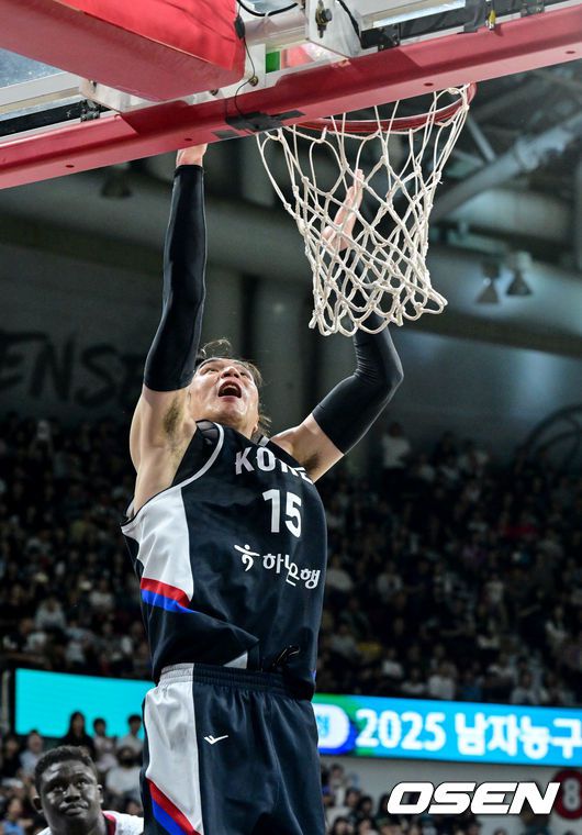 [OSEN=안양, 조은정 기자]20일 안양 정관장 아레나에서 한국 남자농구 대표팀과 카타르 대표팀의 2차 평가전이 열렸다. 안준호 감독이 이끄는 남자농구대표팀은 지난 18일 같은 장소에서 개최된 카타르와 1차 평가전에서 90-71로 승리했다. 3쿼터 대한민국 김종규가 골밑슛을 성공하고 있다. 2025.07.20 /cej@osen.co.kr