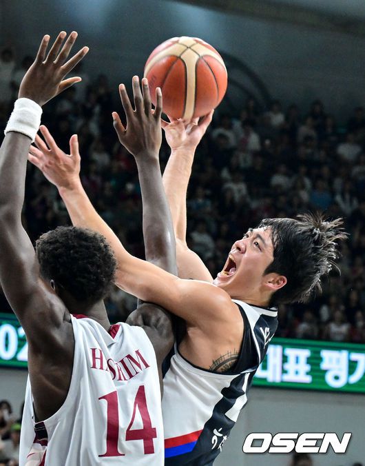[OSEN=안양, 조은정 기자]20일 안양 정관장 아레나에서 한국 남자농구 대표팀과 카타르 대표팀의 2차 평가전이 열렸다. 안준호 감독이 이끄는 남자농구대표팀은 지난 18일 같은 장소에서 개최된 카타르와 1차 평가전에서 90-71로 승리했다. 4쿼터 대한민국 여준석이 슛을 시도하고 있다. 2025.07.20 /cej@osen.co.kr