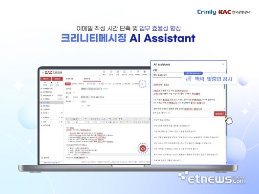 SaaS 메일보안 전문기업 크리니티(대표 유병선)는 한국공항공사에 자사 웹메일 솔루션 '크리니티메시징 AI Assistant'를 공급하며 보다 효율적인 이메일 업무 환경을 구축했다고 밝혔다.