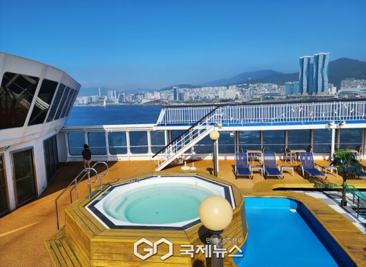(부산=국제뉴스) 유지현 기자 = 29일 일본 사세보에서 전날 출항해 부산항국제여객터미널에 도착하고 있는 크루즈 이스턴 비너스(Eastern Venus) 호.