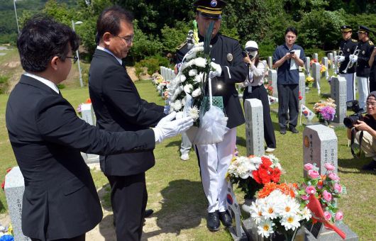 순직 해병 수사 외압 사건을 맡은 이명현 특별검사 등 특검 지휘부가 1일 대전 국립현충원 채해병 묘역을 찾아 참배하고 있다.(공동취재) 2025.07.01. 뉴시스 |