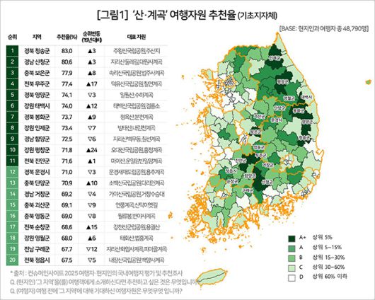 이번 평가는 여행 리서치 전문기관 컨슈머인사이트가 전국 4만 8790명을 대상으로 실시한 ‘2025 여행자·현지인의 국내여행지 평가 및 추천 조사’를 바탕으로 했다.