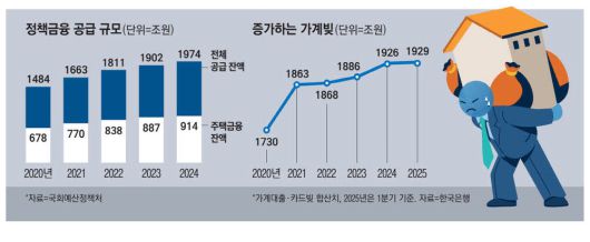 금융당국이 가계대출 진화 총력전에 나서며 금융권을 옥죄고 있지만, 금융 공공기관들이 주택자금 지원을 늘리면서 정책금융 공급 잔액이 2000조원에 육박하고 있다. 막대한 정책금융 자금이 정부의 가계대출 관리 기조를 무력화하고 있다는 지적이 나온다.