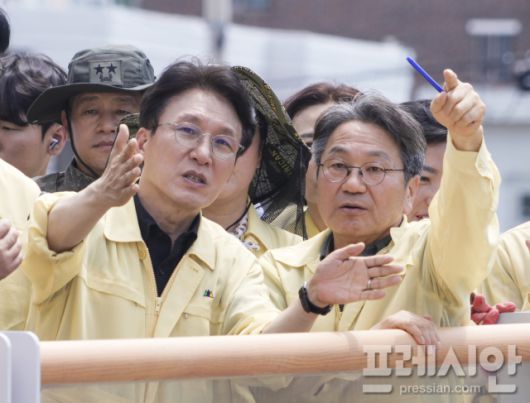 현장 브리핑을 마친 강 시장은 김 총리와 함께 침수피해를 입은 신안교 인근 주택가와 하신마을 딸기 재배 농가도 방문해 주민들과 대화를 나누며 애로사항을 청취했다.