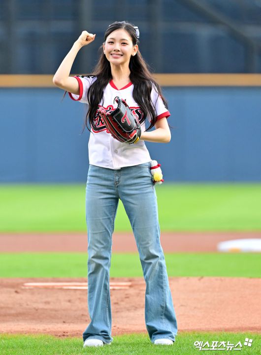 (엑스포츠뉴스 잠실, 김한준 기자) 20일 오후 서울 송파구 잠실야구장에서 열린 '2025 신한 SOL Bank KBO리그' 롯데 자이언츠와 LG 트윈스의 경기, 경기 전 베이비 돈 크라이 이현이 시구에 임하고 있다.김한준 기자 kowel@xportsnews.com