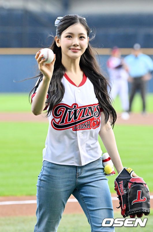 [OSEN=잠실, 민경훈 기자] 20일 오후 서울 잠실구장에서 ‘2025 신한 SOL BANK KBO리그’ LG 트윈스와 롯데 자이언츠의 경기가 열렸다. 이날 경기에서 LG는 임찬규를, 롯데는 이민석을 선발투수로 내세웠다. 경기 전 그룹 베이비돈크라이(Baby DONT Cry)의 이현이 시구를 마친 후 인사를 하고 있다. 2025.07.20 / rumi@osen.co.kr