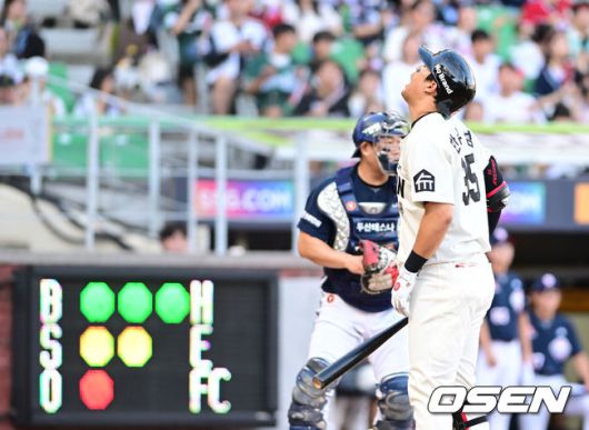 [OSEN=인천, 김성락 기자] 20일 인천 SSG랜더스필드에서 ‘2025 신한 SOL Bank KBO리그’ SSG 랜더스와 두산 베어스의 경기가 열렸다. SSG는 김광현, 두산은 곽빈을 선발로 내세웠다. 1회말 1사 1, 2루 SSG 한유섬이 삼진아웃으로 물러나고 있다. 2025.07.20 / ksl0919@osen.co.kr