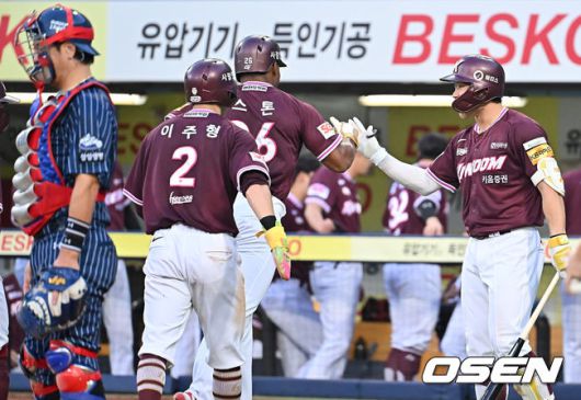 [OSEN=대구, 이석우 기자] 20일 대구삼성라이온즈파크에서 2025 신한 SOL 뱅크 KBO 리그 삼성 라이온즈와 키움 히어로즈의 경기가 열렸다. 홈팀 삼성은 후라도가, 방문팀 키움은 알칸타라가 선발 출전했다. 키움 히어로즈 스톤이 4회초 1사 1,2루 좌중월 홈런을 치고 축하를 받고 있다. 2025.07.20 / foto0307@osen.co.kr