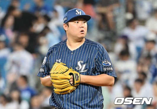 [OSEN=대구, 이석우 기자] 20일 대구삼성라이온즈파크에서 2025 신한 SOL 뱅크 KBO 리그 삼성 라이온즈와 키움 히어로즈의 경기가 열렸다. 홈팀 삼성은 후라도가, 방문팀 키움은 알칸타라가 선발 출전했다. 삼성 라이온즈 이승현이 포수 강민호를 바라보고 있다. 2025.07.20 / foto0307@osen.co.kr
