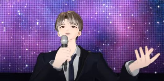 버추얼 아이돌 다비드 봉이 8일 쇼케이스에서 데뷔곡 '스타라이트'를 부르고 있다. EBS 캡처 |
