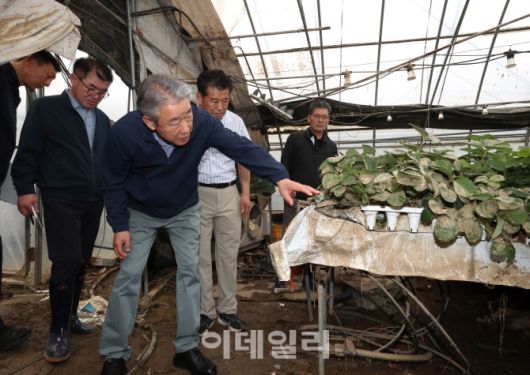 [이데일리 김태형 기자] 강호동 농협중앙회장이 20일 집중호우로 큰 피해를 입은 충남 예산·아산 및 경남 합천·산청의 피해현장을 방문해 농업인 피해상황을 점검하고 있다.