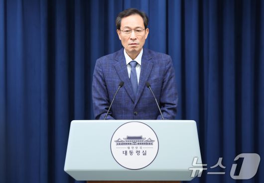 우상호 정무수석이 20일 서울 용산구 대통령실 청사에서 이진숙 사회부총리 겸 교육부 장관 후보자 지명 철회 관련 브리핑을 하고 있다. 2025.7.20/뉴스1 ⓒ News1 허경 기자 |