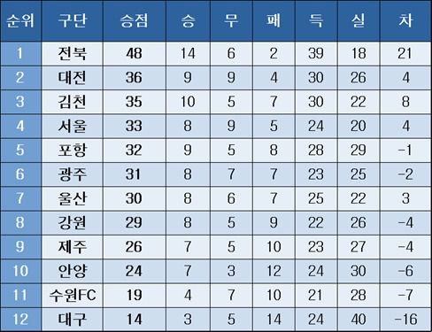 K리그1 중간 순위