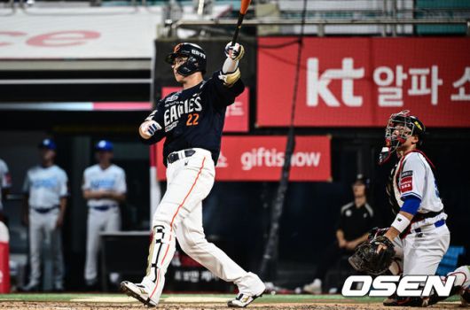 [OSEN=수원, 조은정 기자]20일 오후 수원 KT위즈파크에서 ‘2025 신한 SOL Bank KBO리그’ KT 위즈와 한화 이글스의 경기가 열렸다. 홈팀 KT는 소형준, 방문팀 한화는 류현진을 선발로 내세웠다. 9회초 무사 만루 한화 채은성이 만루 홈런을 날리고 있다. 2025.07.20 /cej@osen.co.kr