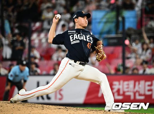 [OSEN=수원, 조은정 기자]20일 오후 수원 KT위즈파크에서 ‘2025 신한 SOL Bank KBO리그’ KT 위즈와 한화 이글스의 경기가 열렸다. 홈팀 KT는 소형준, 방문팀 한화는 류현진을 선발로 내세웠다. 9회말 한화 정우주가 역투하고 있다. 2025.07.20 /cej@osen.co.kr