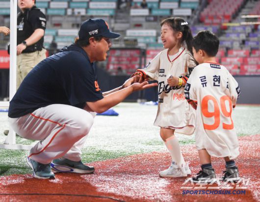 20일 수원 KT위즈파크에서 열린 한화-KT전. 한화가 10대0으로 승리했다. 승리투수 류현진이 자녀들과 함께 기쁨을 만끽하고 있다. 수원=정재근 기자 cjg@sportschosun.com/2025.7.20/