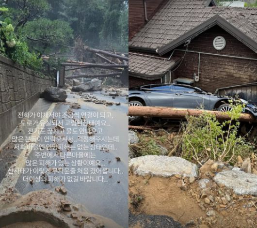 공개된 사진에는 산사태로 무너진 도로의 모습이 담겨 있으며, 서효림은 "산사태가 이렇게 무서운 줄 처음 겪어 봅니다... 더 이상의 피해가 없길 바랍니다"라고 덧붙이며 안타까운 심경을 전했다.