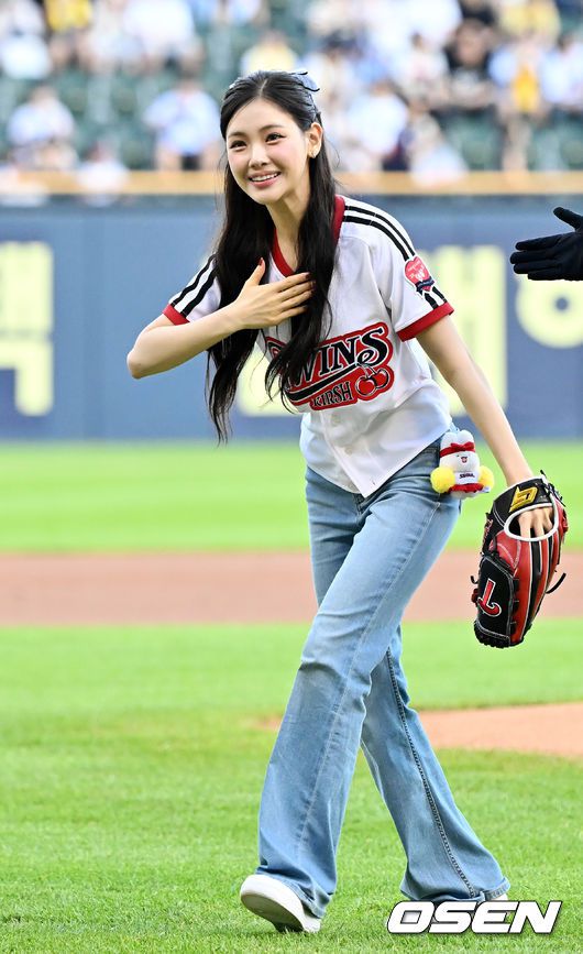 [OSEN=잠실, 민경훈 기자] 20일 오후 서울 잠실구장에서 ‘2025 신한 SOL BANK KBO리그’ LG 트윈스와 롯데 자이언츠의 경기가 열렸다. 이날 경기에서 LG는 임찬규를, 롯데는 이민석을 선발투수로 내세웠다. 경기 전 그룹 베이비돈크라이(Baby DONT Cry)의 이현이 시구를 하고 있다. 2025.07.20 / rumi@osen.co.kr