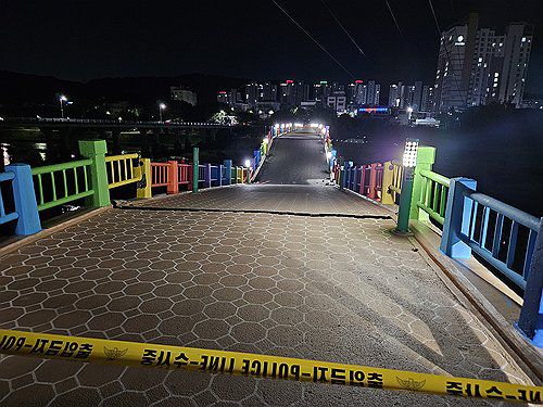 울산소방본부 등에 따르면 이날 오후 8시 33분께 구 삼호교 일부가 무너졌다는 신고가 들어왔다. 2025.7.20 [독자 제공. 재판매 및 DB 금지]