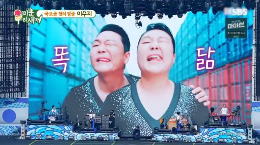 이수지는 촬영 당시 해프닝도 공개했다. 그는 "싸이 옷을 그대로 입었는데, 바지가 작더라. 역시 연예인이라 보이는 것보다 작더라"고 밝혀 놀라게 했다.