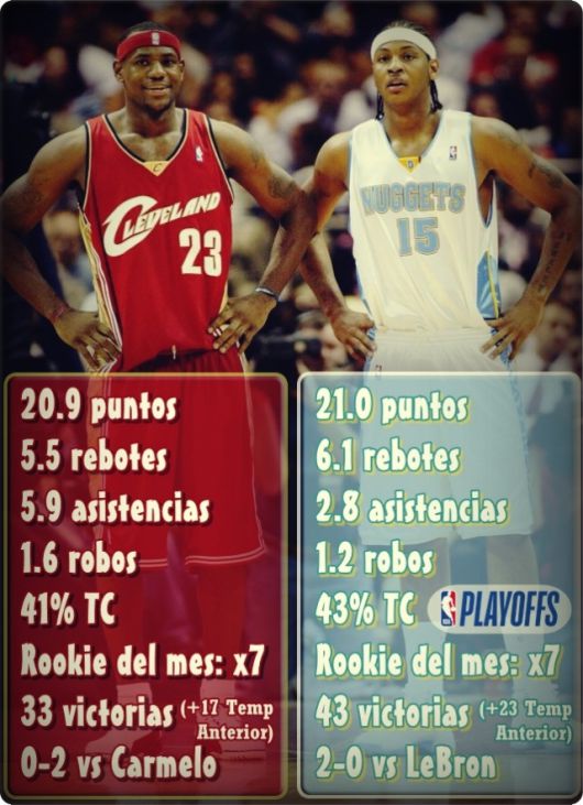 제임스와 앤서니 모두 NBA 데뷔 시즌부터 최고의 활약을 펼쳤다. 제임스는 79경기 출전, 평균 20.9점 5.5리바운드 5.9어시스트 1.6스틸을 기록했다. 앤서니는 82경기 출전, 평균 21.0점 6.1리바운드 2.8어시스트 1.2스틸을 기록했다.