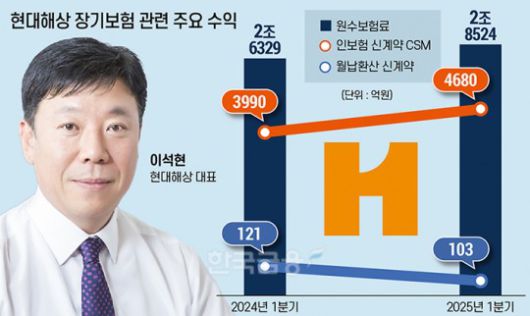 20일 보험업계에 따르면, 올해 1분기 말 기준 현대해상의 장기손해보험 원수보험료는 2조 8524억원으로 전년 동기 대비 8.3% 증가한 것으로 나타났다.