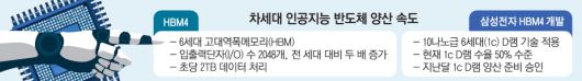 삼성전자가 하반기 고대역폭메모리(HBM) 승부처로 꼽히는 HBM4(6세대) 시장 선점에 속도를 내고 있다. HBM4에 적용되는 10나노급 6세대(1c) D램의 수율(양품 비율)도 안정적인 것으로 나타났다. 최근에는 이재용 회장이 ‘사법 리스크’ 족쇄를 완벽히 해방되면서 삼성전자의 반도체 사업 재건에도 탄력이 붙을 것으로 보인다.