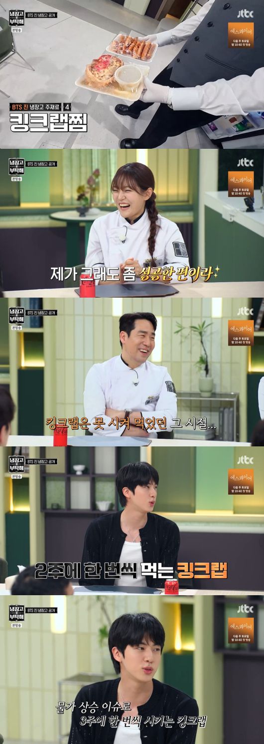 이날 최초 공개된 진의 냉장고에서는 킹크랩찜이 등장해 모두를 깜짝 놀라게 했다.