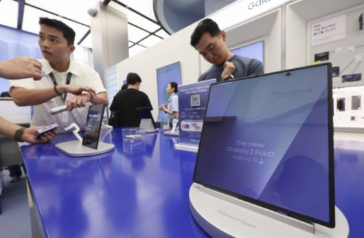 삼성전자 신형 폴더블 스마트폰 갤럭시 Z 폴드7 및 플립7 공개 첫 날인 10일 서울 서초구 삼성 강남점에서 소비자들이 스마트폰을 살펴보고 있다. /사진=뉴시스 |