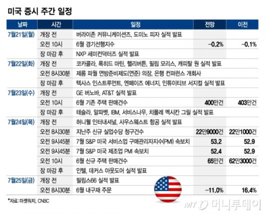 미국 증시 주간 일정_0720/그래픽=김현정 |