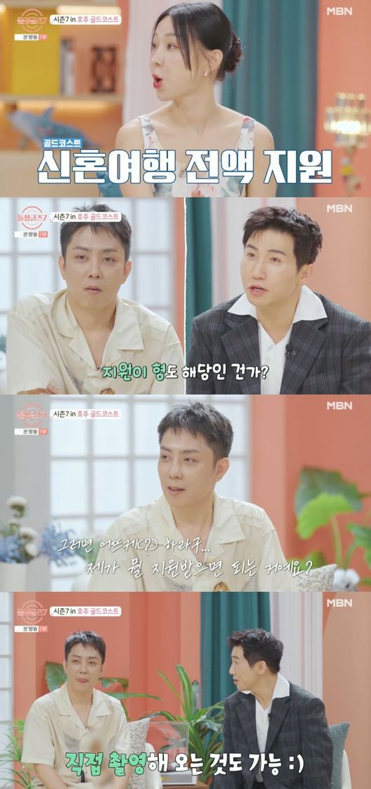 이지혜는 호주 골드코스트에 대해 “이번 시즌에서 커플이 돼 재혼을 하면 호주 골드코스트 신혼여행 전액 지원해 준다고 한다”라고 전했다. 그러자 유세윤은 “그러면 지원이 형도 해당되는 건가? 프로그램 출연자 아니냐”라고 물었다.