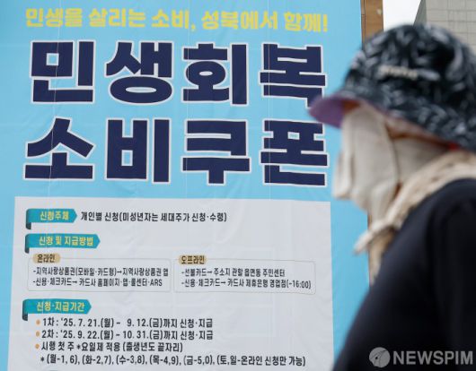 [서울=뉴스핌] 류기찬 인턴기자 = 민생회복 소비쿠폰 신청 시작일인 21일 오전 서울 성북구청 외벽에 관련 현수막이 붙어있다. 2025.07.21 ryuchan0925@newspim.com |