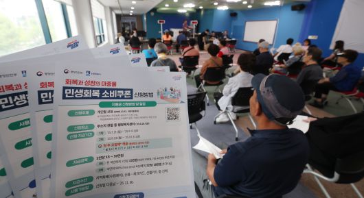 정부는 이날 오전 9시부터 신용·체크카드 또는 모바일·카드형 지역사랑상품권 앱과 홈페이지, 은행 창구·읍면동 주민센터 등을 통해 소비쿠폰 신청 접수를 시작했다.