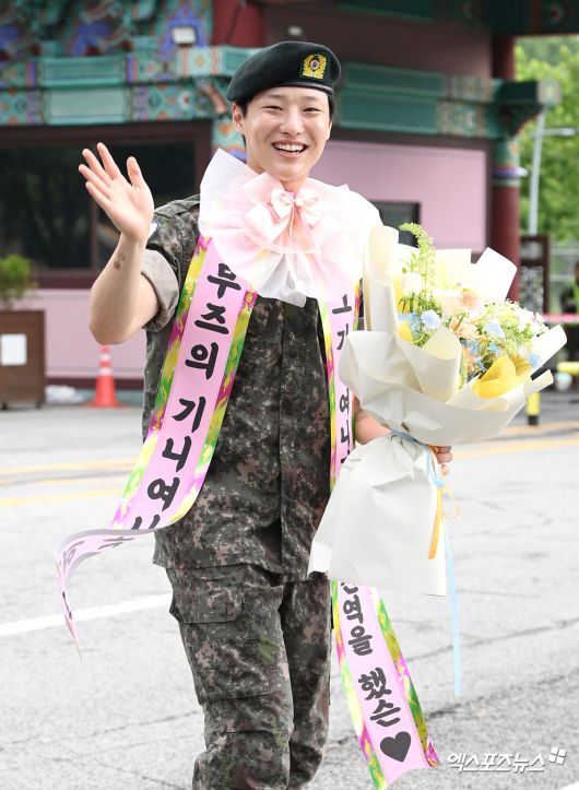 군복 차림의 우즈는 한층 성숙해진 분위기와 단단해진 체격으로 등장했다. 밝은 미소와 씩씩한 경례로 전역을 신고한 그는 “기다려줘서 정말 감사하다”며 팬들을 향해 첫 인사를 전했다.
