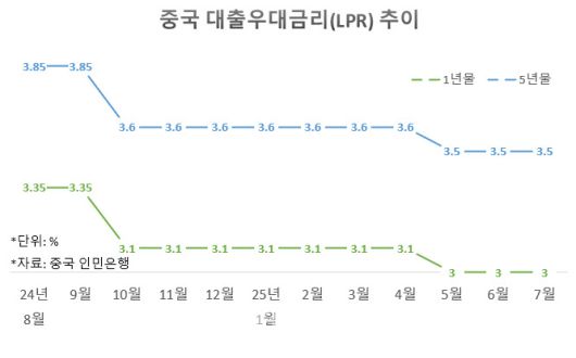 인민은행은 올해 5월 LPR 1년물과 5년물을 각각 10bp(1bp=0.01%포인트) 인하한 후 동결 기조를 유지했다.
