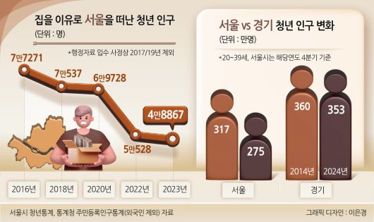 9만9395명. 지난 2년간(서울시 청년통계, 2022~2023년 기준) 서울을 떠난 젊은이들의 숫자다. 경남 밀양과 같은 지방 도시 하나와 맞먹는 인구가 수도 밖으로 삶의 터전을 옮겼다.