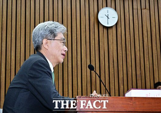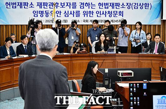 [더팩트ㅣ국회=배정한 기자] 김상환 헌법재판소 재판관 겸 헌법재판소장 후보자가 21일 오전 서울 여의도 국회에서 열린 인사청문회에 참석해 질의에 답변을 하고 있다.