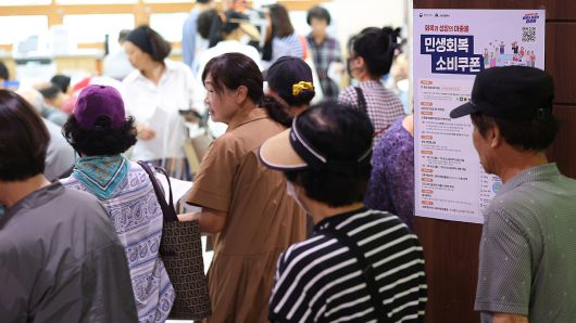 ▲ 민생회복 소비쿠폰 신청이 시작된 21일 대구 달서구 진천동행정복지센터에서 시민들이 신청 순서를 기다리고 있다.