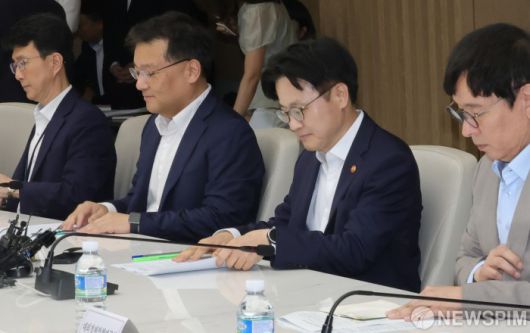 [서울=뉴스핌] 양윤모 기자 = 미국의 관세 조치 부과가 8월1일 예고된 가운데, 21일 김정관 산업통상자원부 장관이 서울 대한상공회의소에서 취임 후 처음으로 주요 경제단체 및 업계와 대미 통상 긴급 점검 회의를 개최 했다. 2025.07.21 yym58@newspim.com