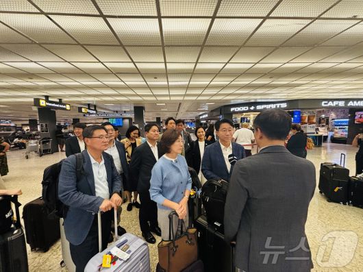 더불어민주당 조정식 의원과 국민의힘 나경원 의원을 공동 단장으로 한 한미의원연맹 방문단은 이날 워싱턴DC 인근에 위치한 덜레스국제공항을 통해 입국, 방미 일정을 시작했다.