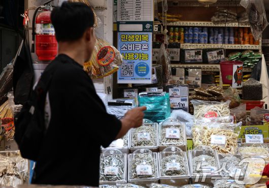 (서울=뉴스1) 구윤성 기자 = 민생회복 소비쿠폰 1차 신청 첫 날인 21일 서울의 한 전통시장에 쿠폰 사용 관련 포스터가 붙어 있다. 2025.7.21/뉴스1kysplanet@news1.krCopyright ⓒ 뉴스1. All rights reserved. 무단 전재 및 재배포, AI학습 이용 금지.