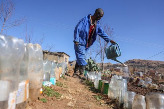 지난 7일(현지시간) 아프리카 레소토 부타부테구의 한 주민이 자신의 채소밭에 물을 주고 있다. 레소토는 심각한 식량 부족을 겪고 있어 7월 국가 재난이 선포되기도 했다. 레소토 정부에 따르면 현재 70만명이 굶주리고 있다. 또한 레소토 인구 200만명 중 약 4분의 1이 무직이며 인구의 절반이 빈곤선 이하의 소득으로 살고 있다. 인구의 약 80%는 생계형 농업에 의지하며 살고 있다. 2024.08.07 /AFPBBNews=뉴스1 |