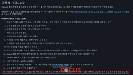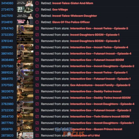 밸브는 최근 '스팀'의 규정 및 가이드라인에 카드사, 은행, 인터넷 네트워크의 제공업체의 규칙과 기준을 위반하는 콘텐츠, 특히 특정 유형의 성인 전용 콘텐츠를 게시할 수 없다는 내용을 추가했다. 또 일정한 규칙성을 갖지 않고 성인 게임들을 대거 삭제하는 조치를 시행했다.